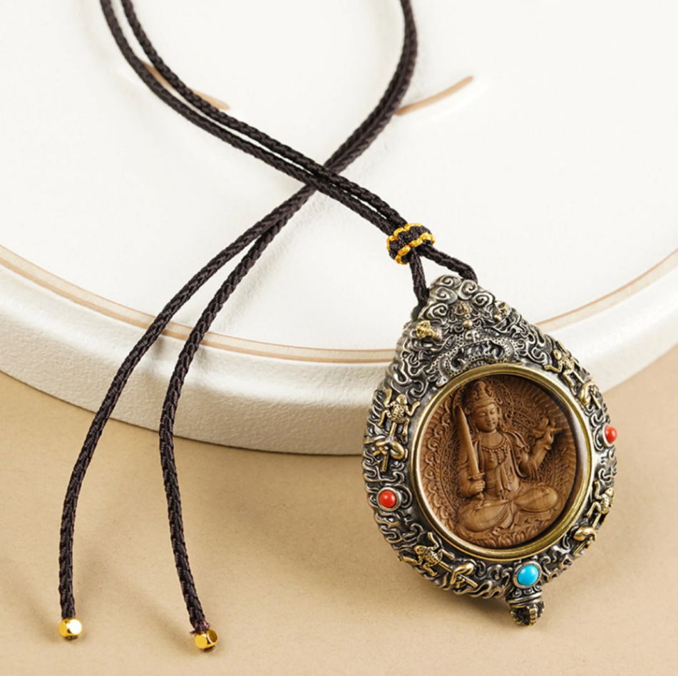Fanchen·Hand-Carved White Copper and Tibetan Silver Sandalwood Buddhist Pendant