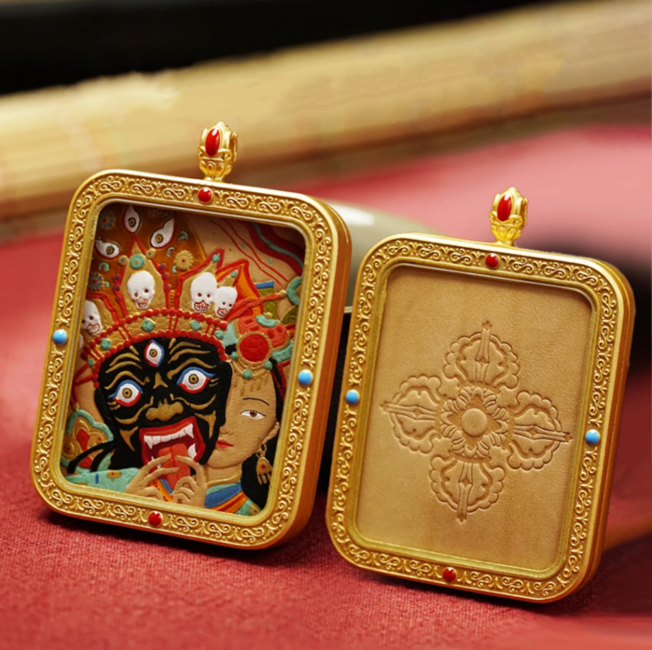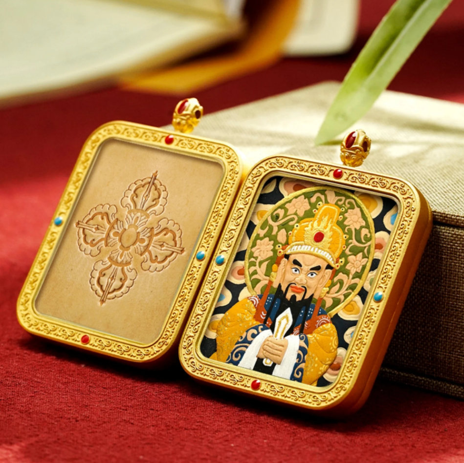Fanchen·Hand-Carved Thangka Buddha Pendant Necklace with Brass Gawu Box