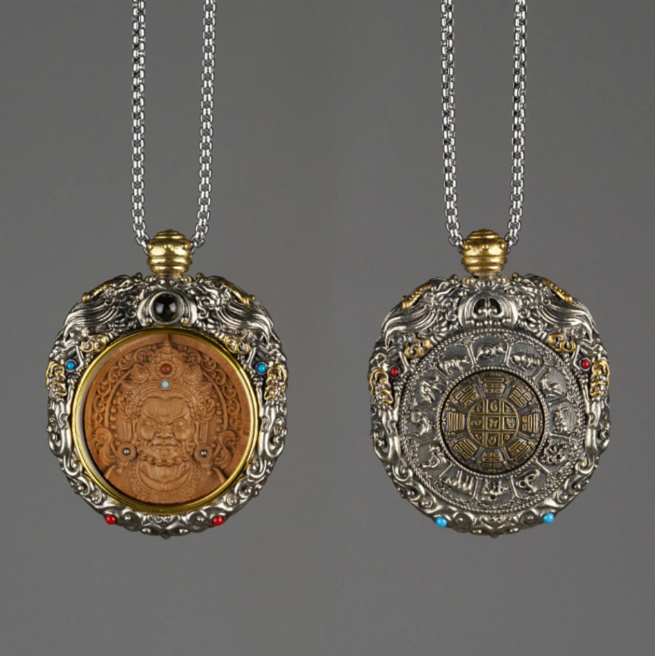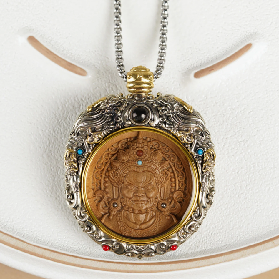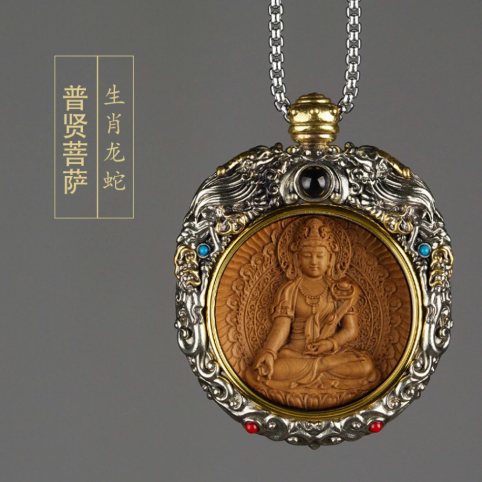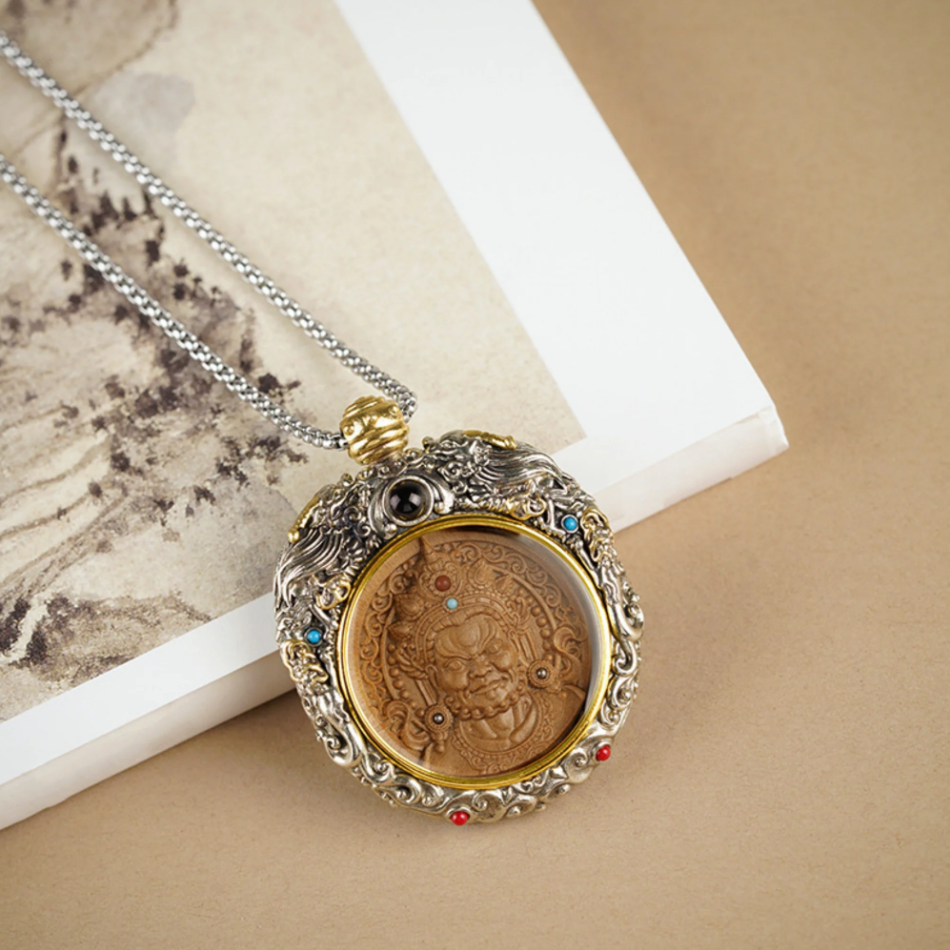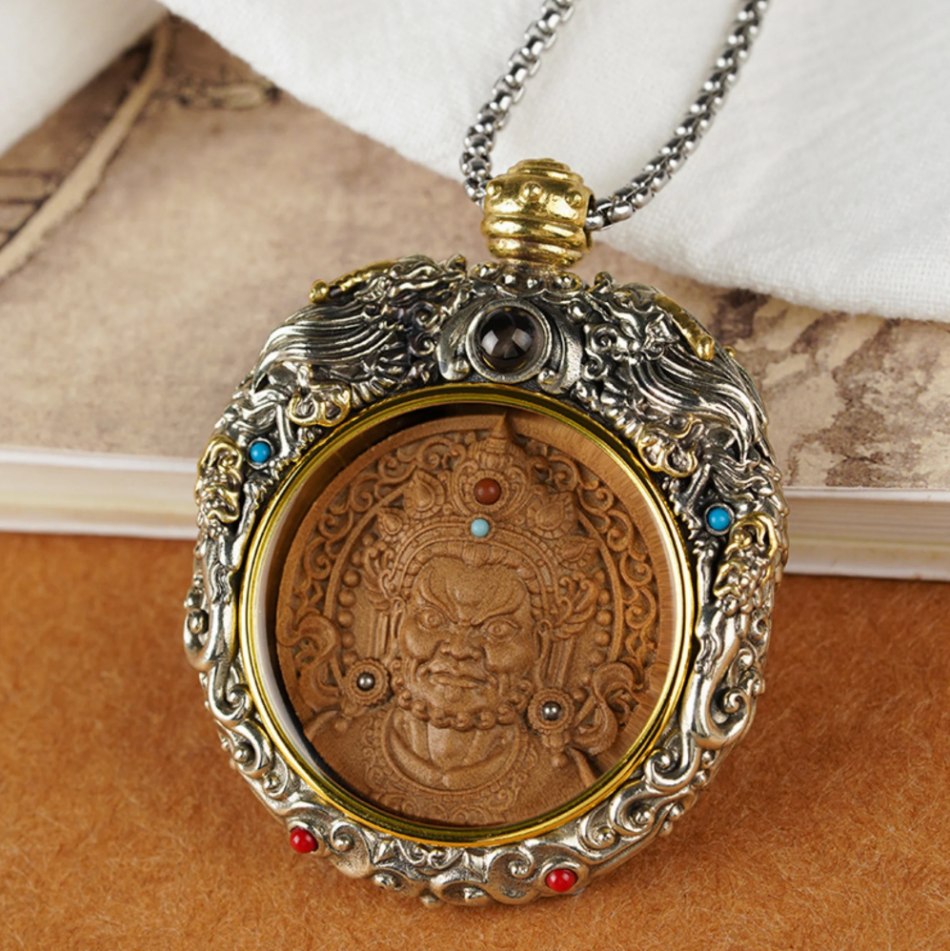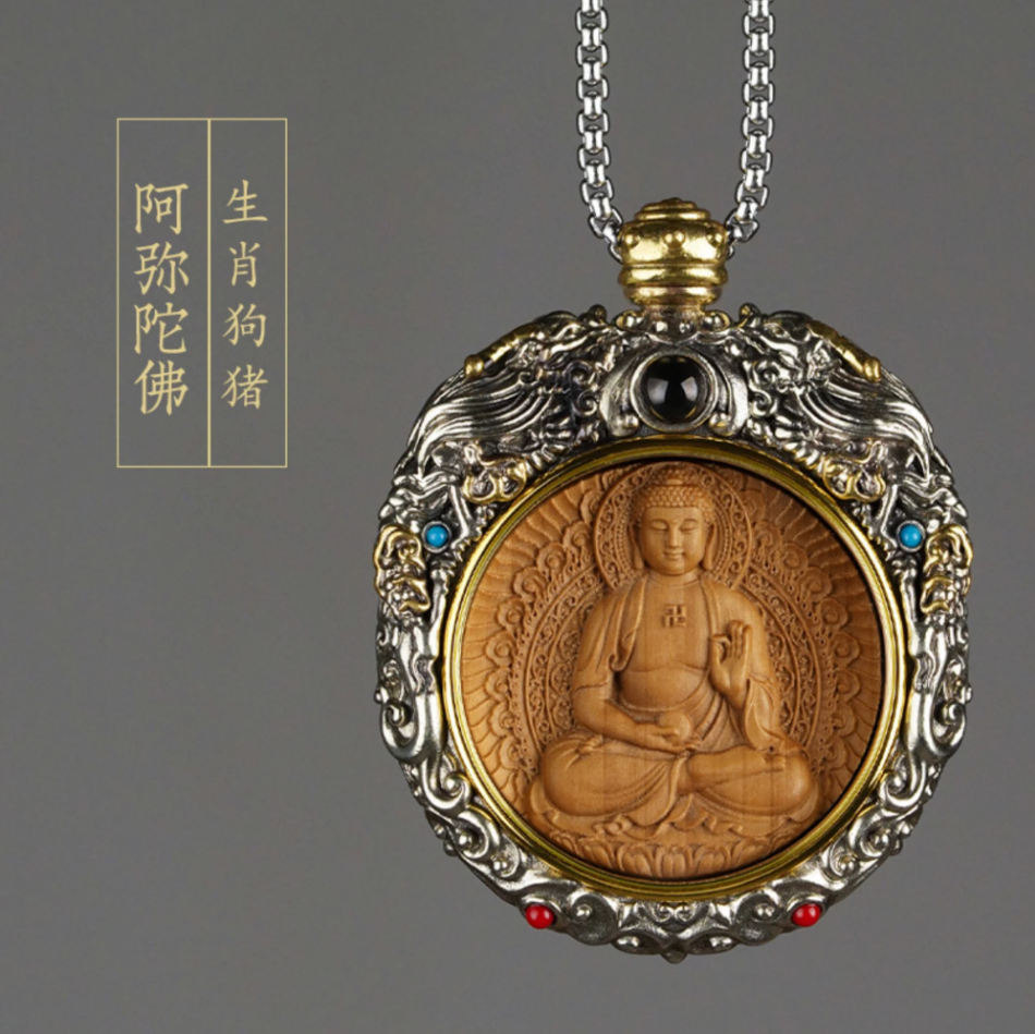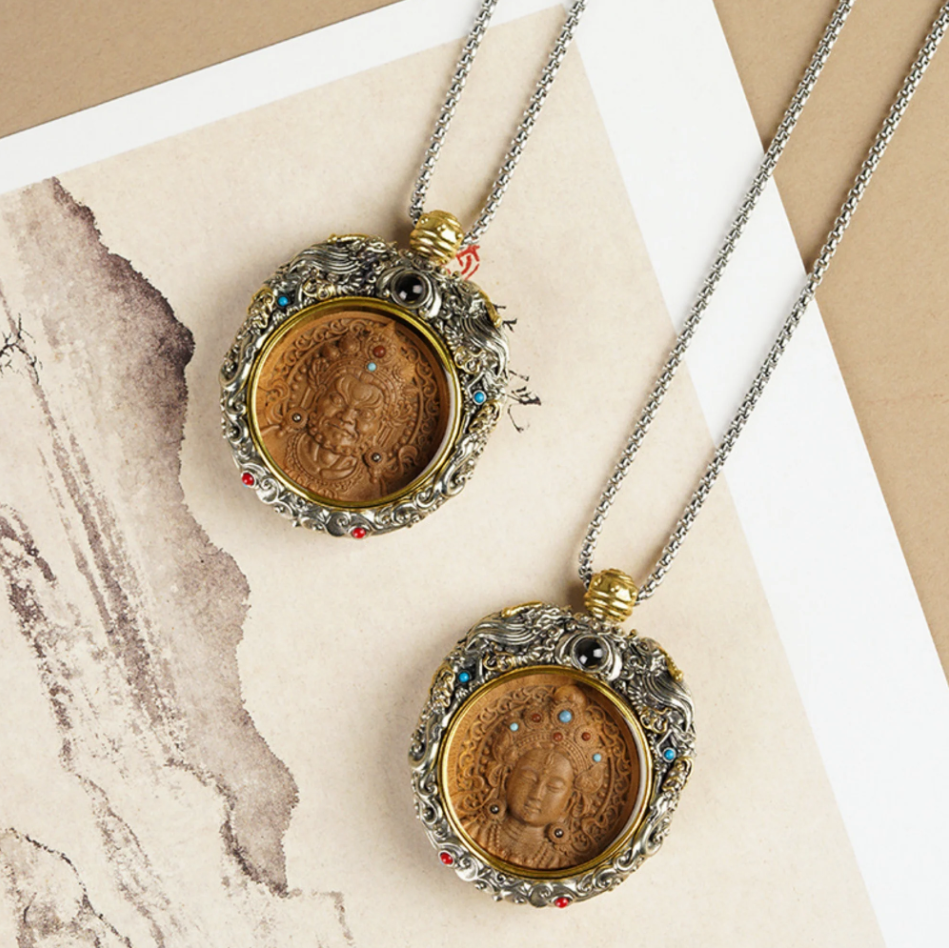 Fanchen·Hand-Carved White Copper and Tibetan Silver Sandalwood Buddhist Pendant