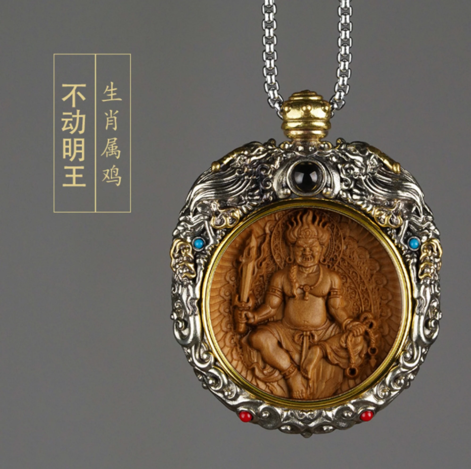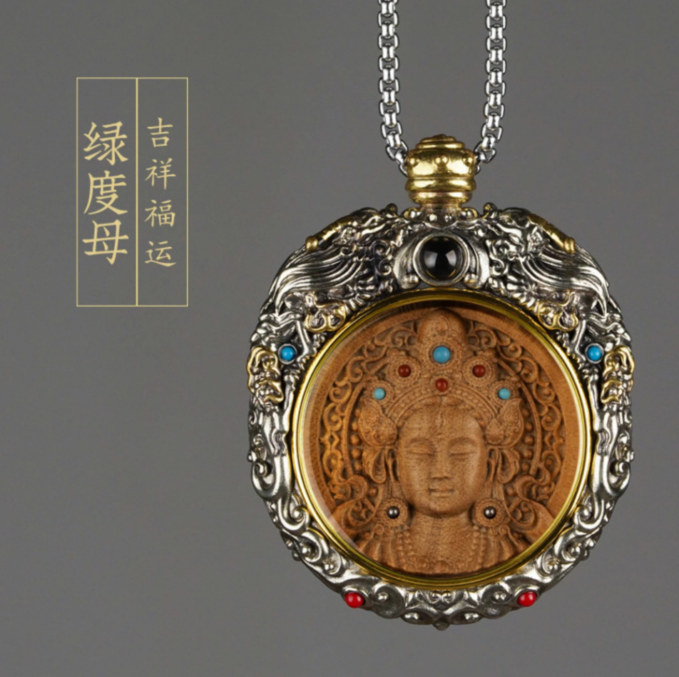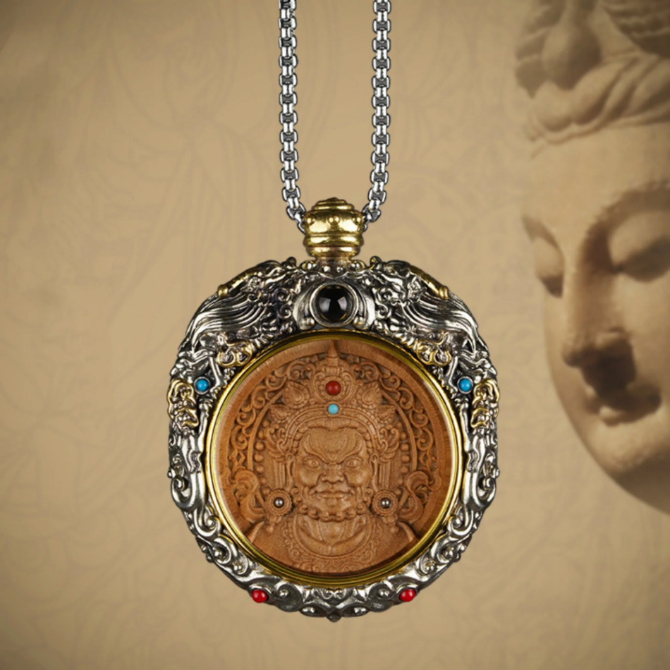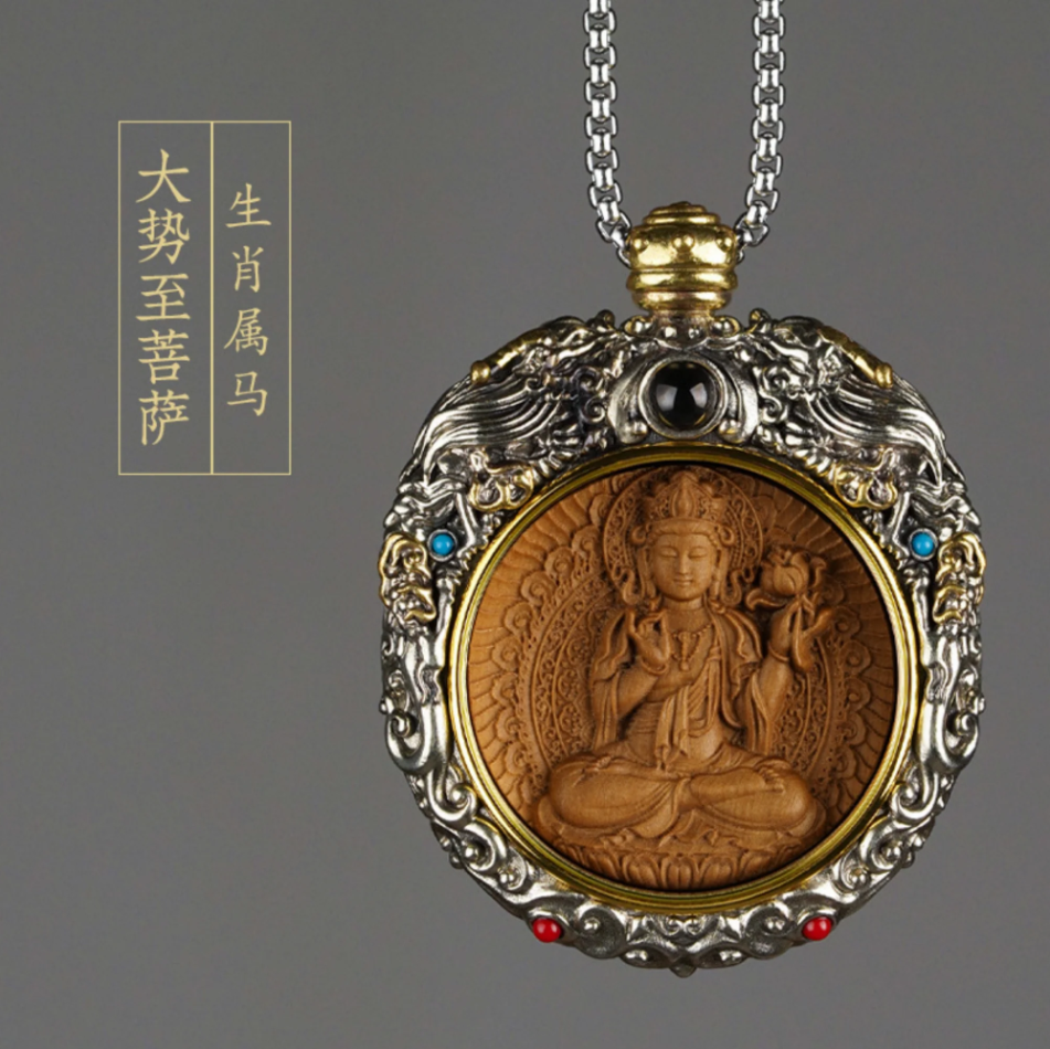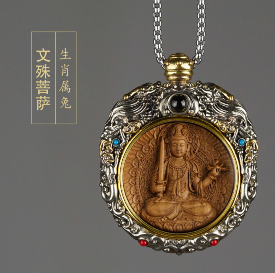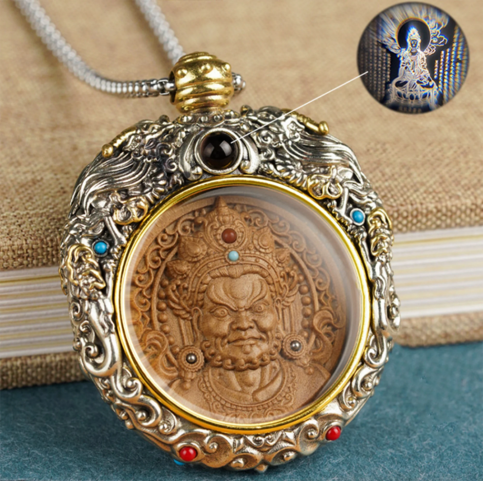 Fanchen·Hand-Carved White Copper and Tibetan Silver Sandalwood Buddhist Pendant