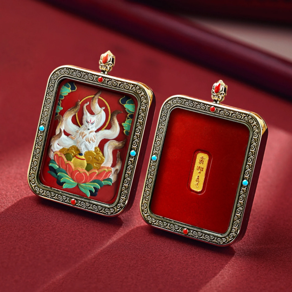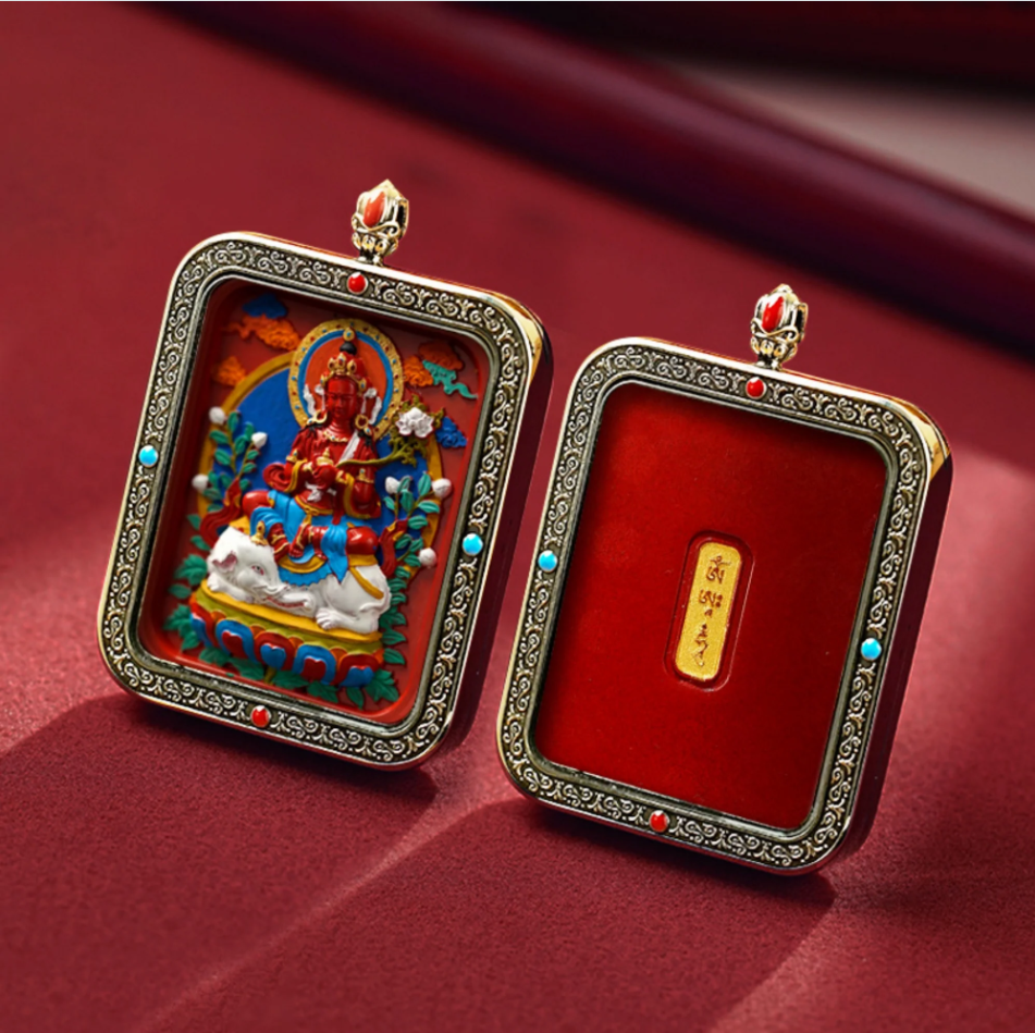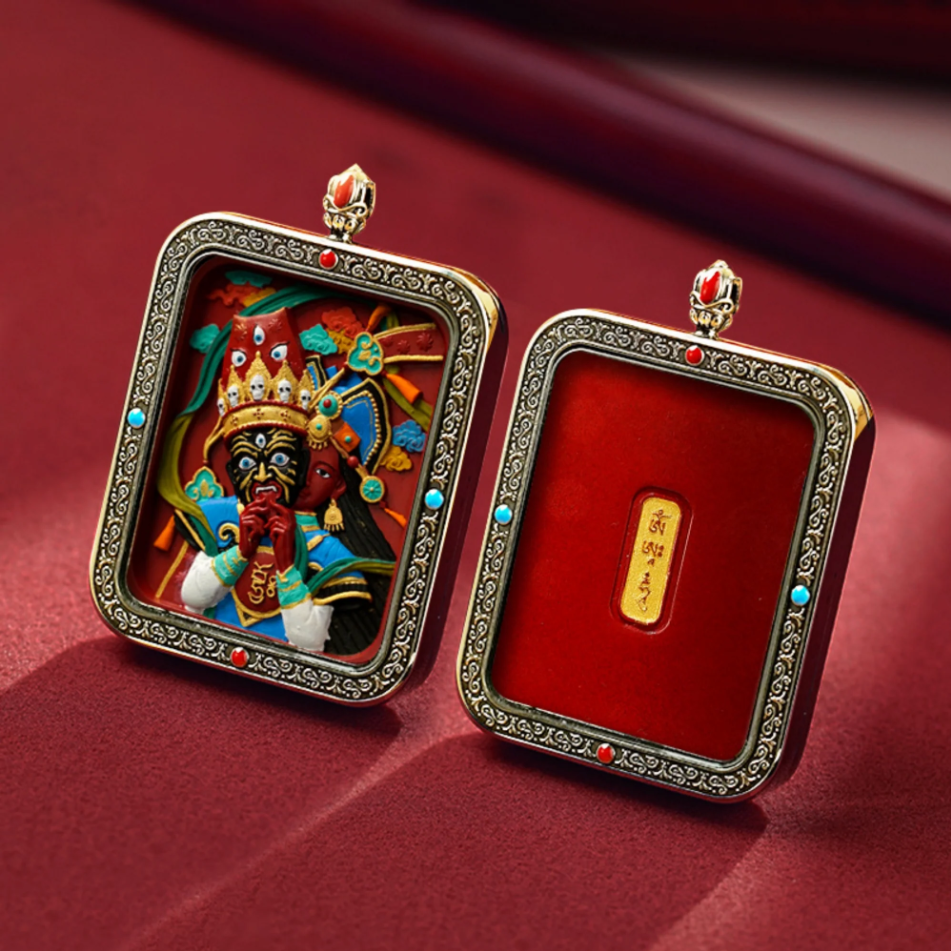 Symbolic Significance: Wearing a Ga Wu box has been a centuries-old practice in Tibetan Buddhism, symbolizing protection, spiritual connection, and blessing. The pendant features sacred symbols and deities, each with unique meanings.