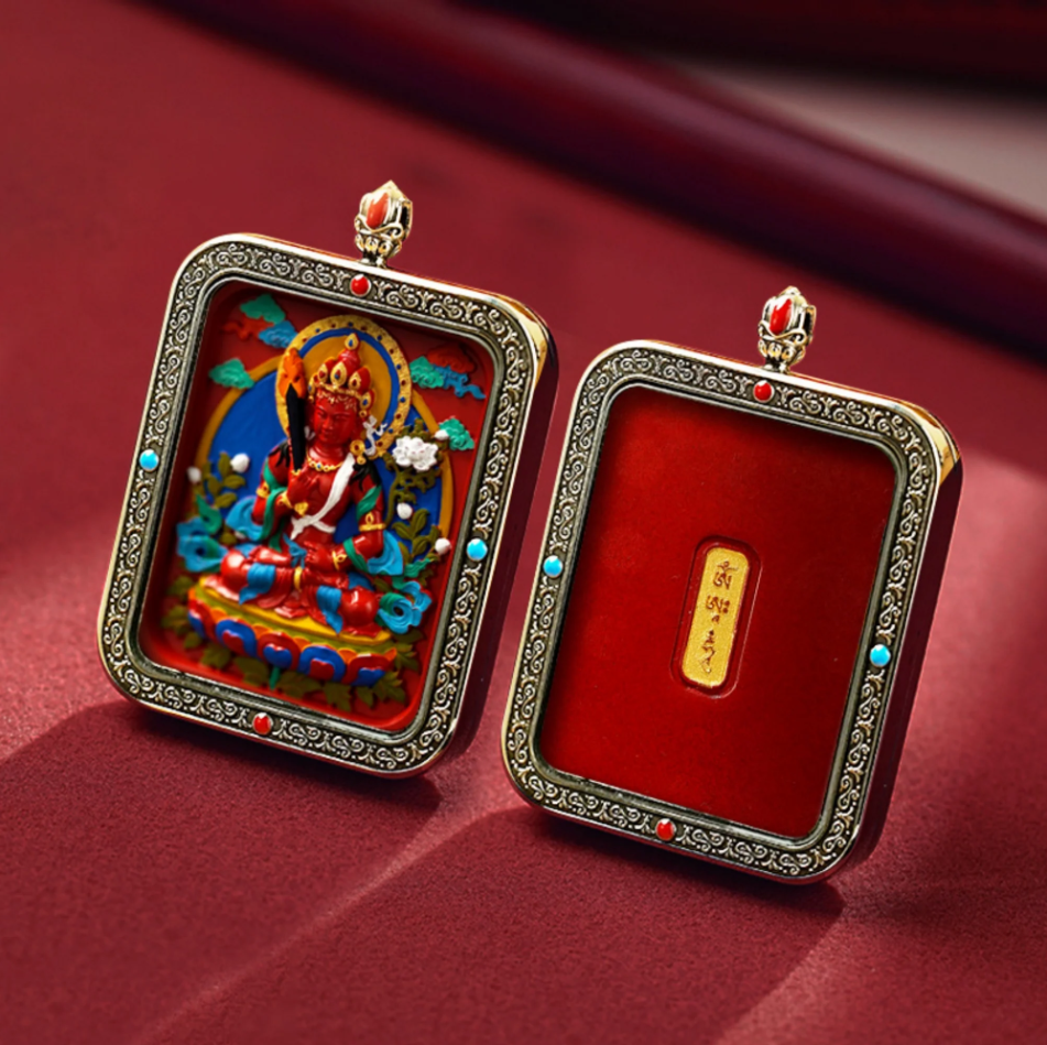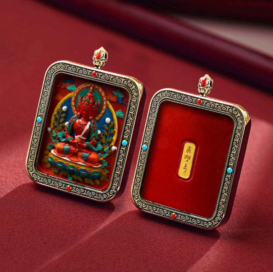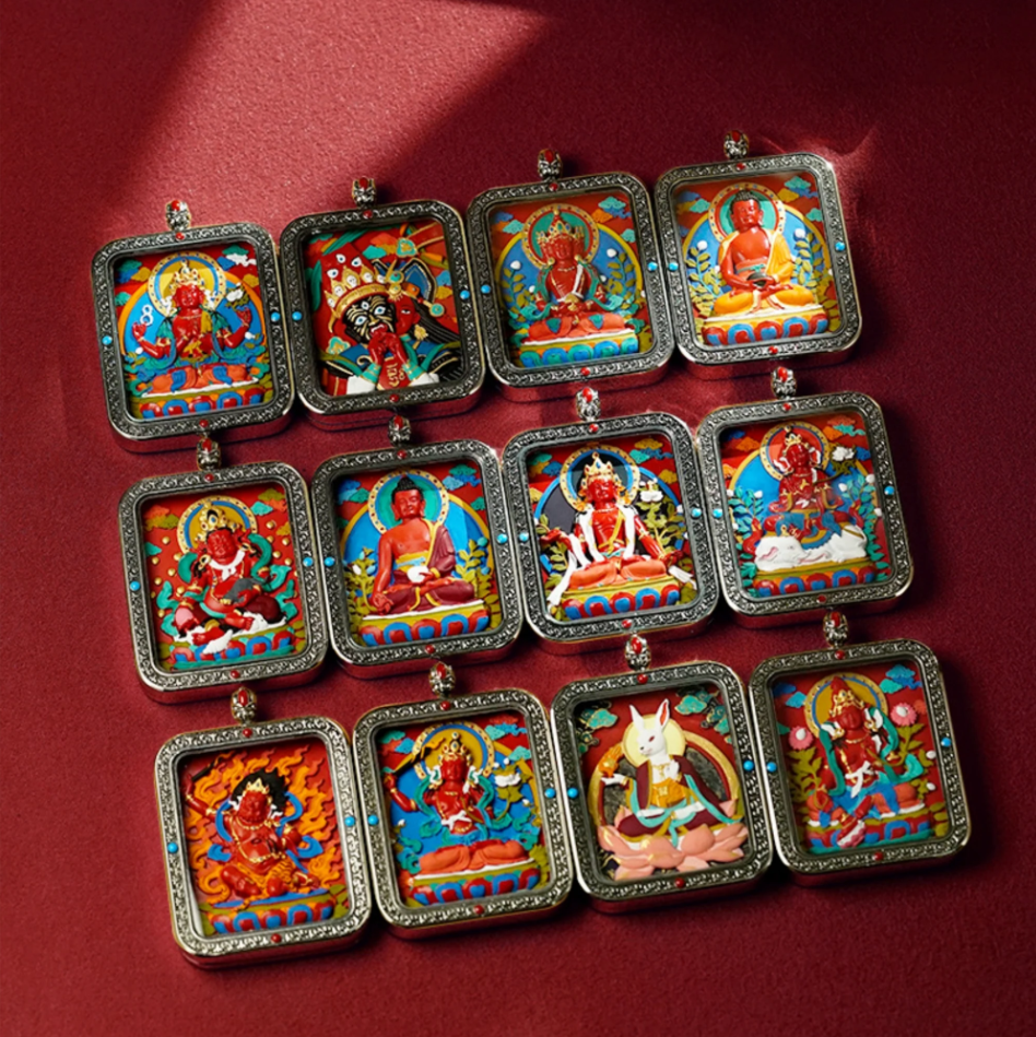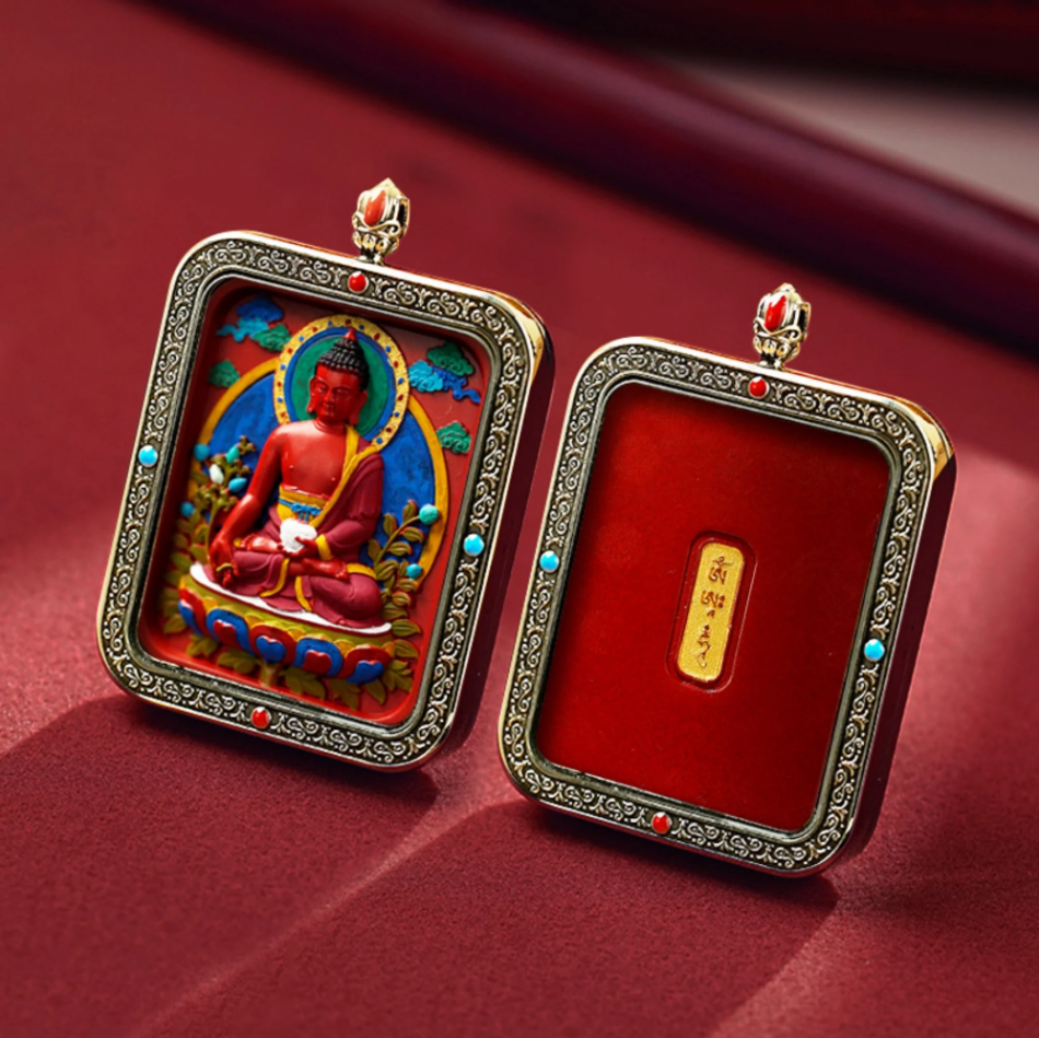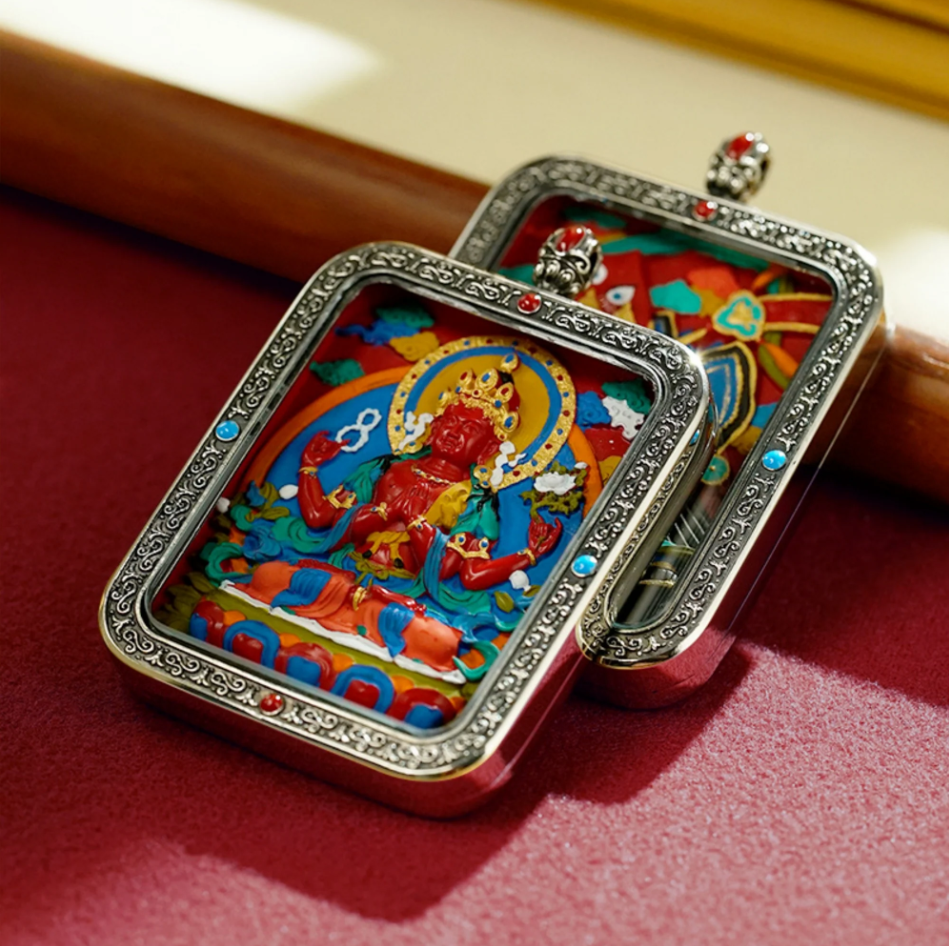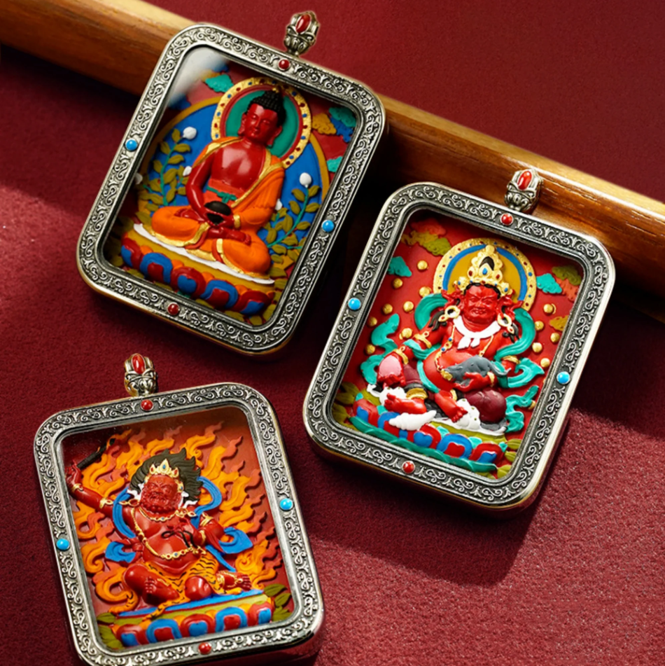 Crafted with precision, this Tibetan Buddhist pendant necklace is made from hand-carved white copper and adorned with cinnabar. Each piece features intricate, colorful details that bring out the sacred symbolism of Tibetan Buddhism. This pendant serves not only as a spiritual amulet but also as a unique piece of meaningful jewelry, offering protection and positive energy to its wearer. Ideal for those seeking a deeper spiritual connection through Buddhist symbolism and art.