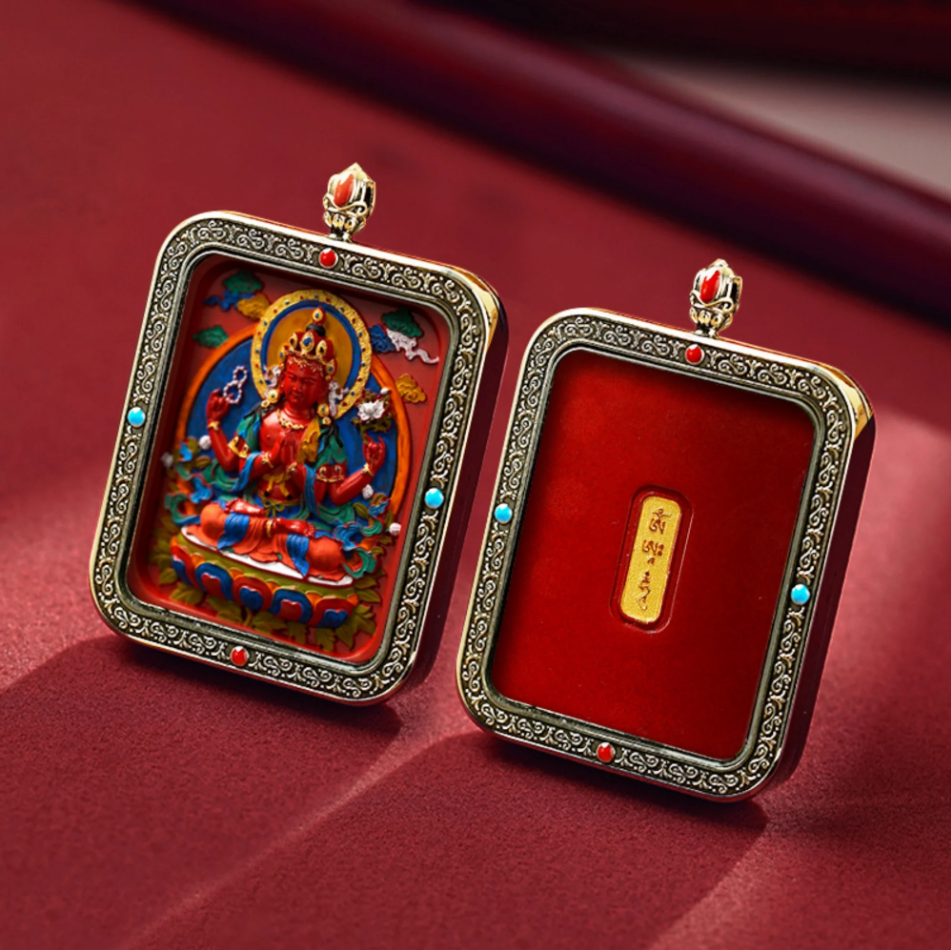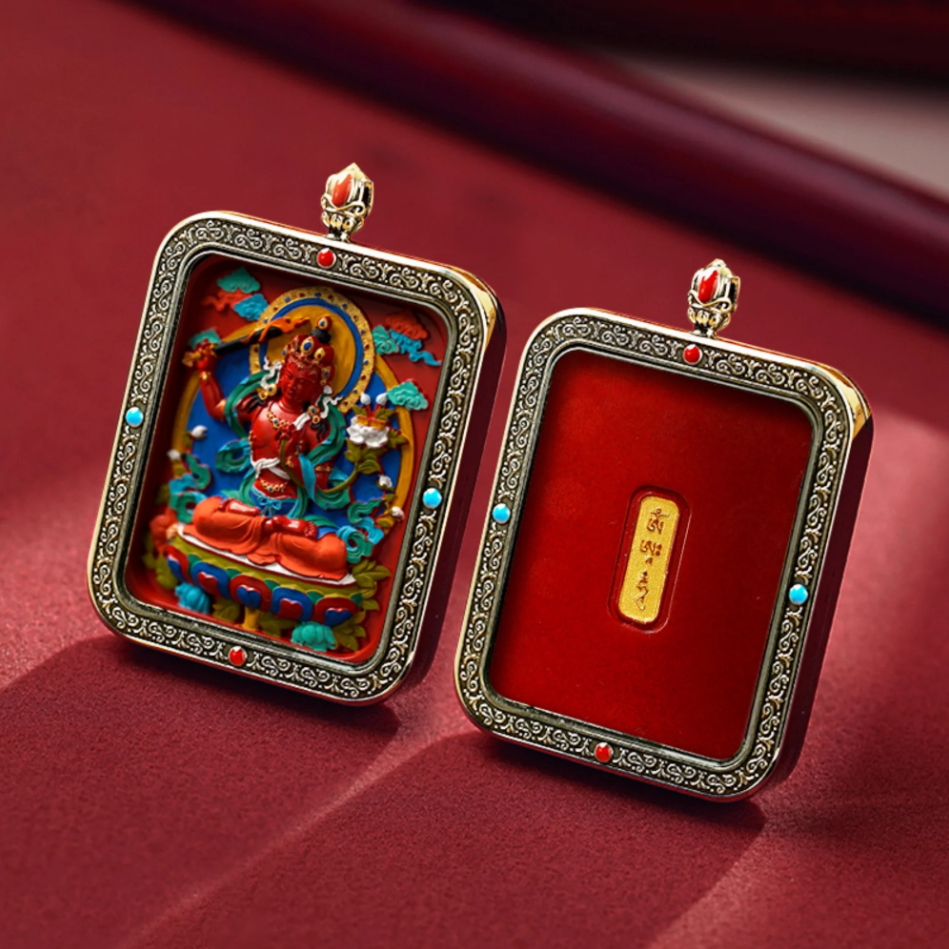 Fanchen·Hand-painted thangka cinnabar white copper pendant necklace (Gawu box)