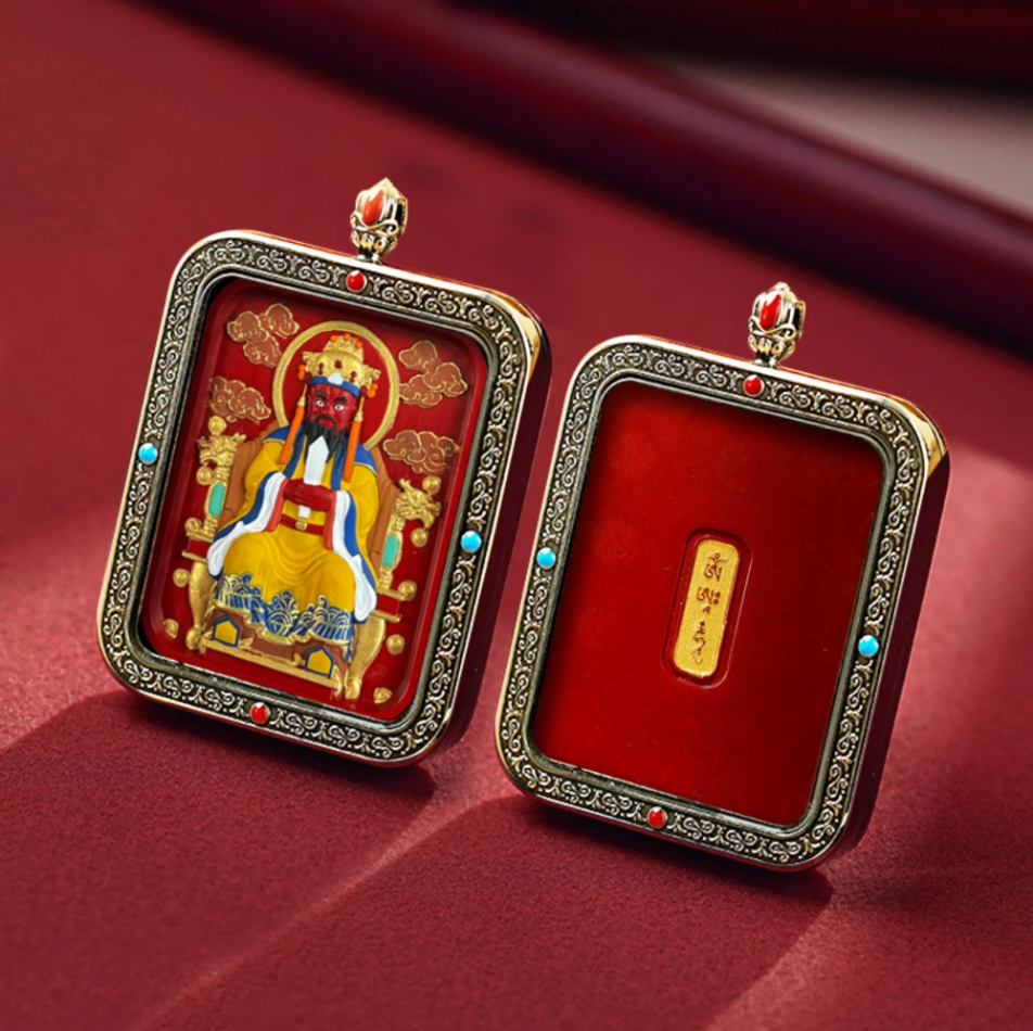 Hand-Painted Thangka: Each pendant is adorned with meticulously hand-painted Thangka, a traditional Tibetan Buddhist art form depicting sacred deities and symbols. These intricate designs showcase vibrant colors that represent the divine.