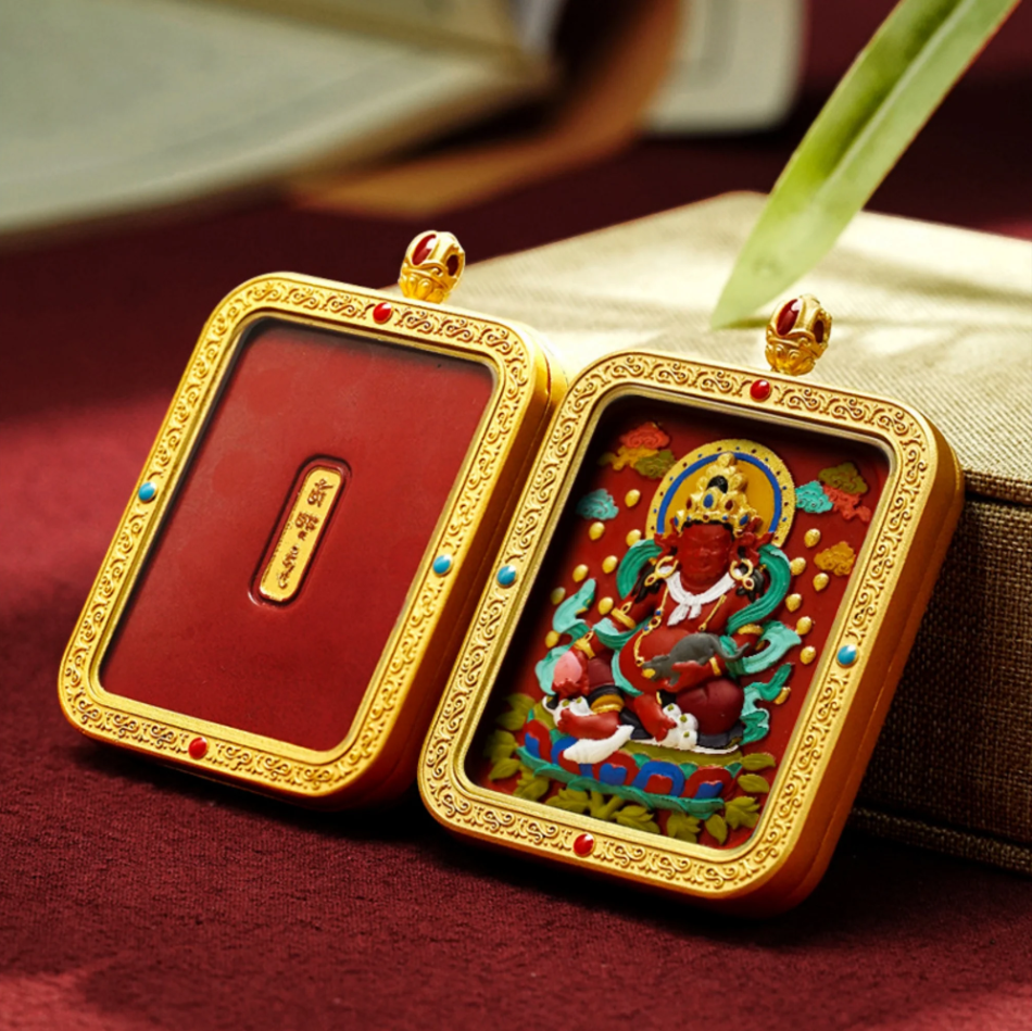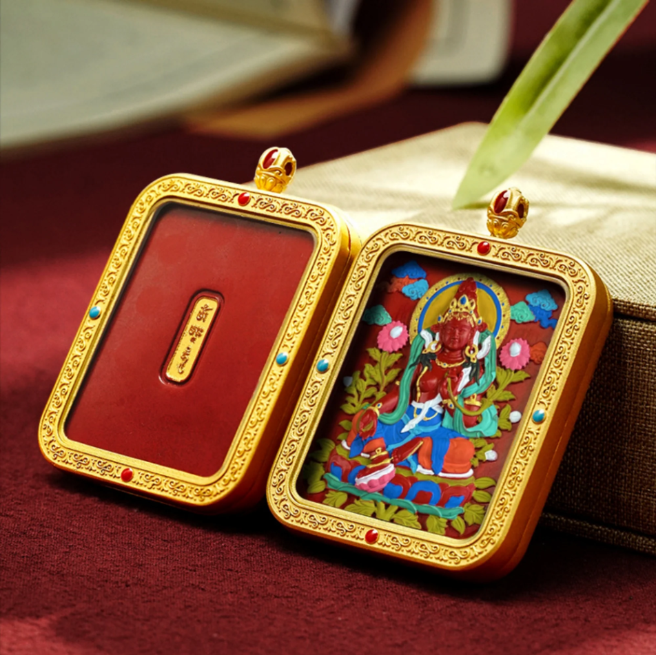 Fanchen·Hand-Painted Thangka Red Sand Brass Pendant Necklace (Ga Wu Box)