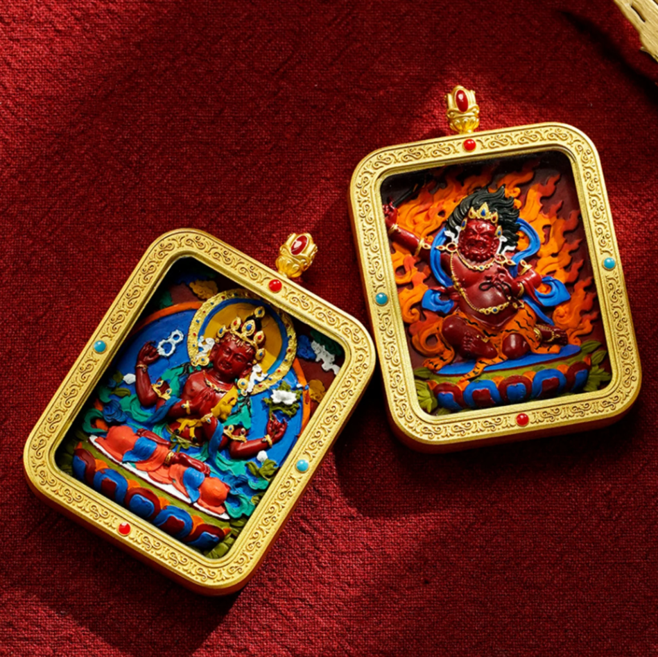 • Hand-Painted Thangka: Each pendant is adorned with meticulously hand-painted Thangka, a traditional Tibetan Buddhist art form depicting sacred deities and symbols. These intricate designs showcase vibrant colors that represent the divine.