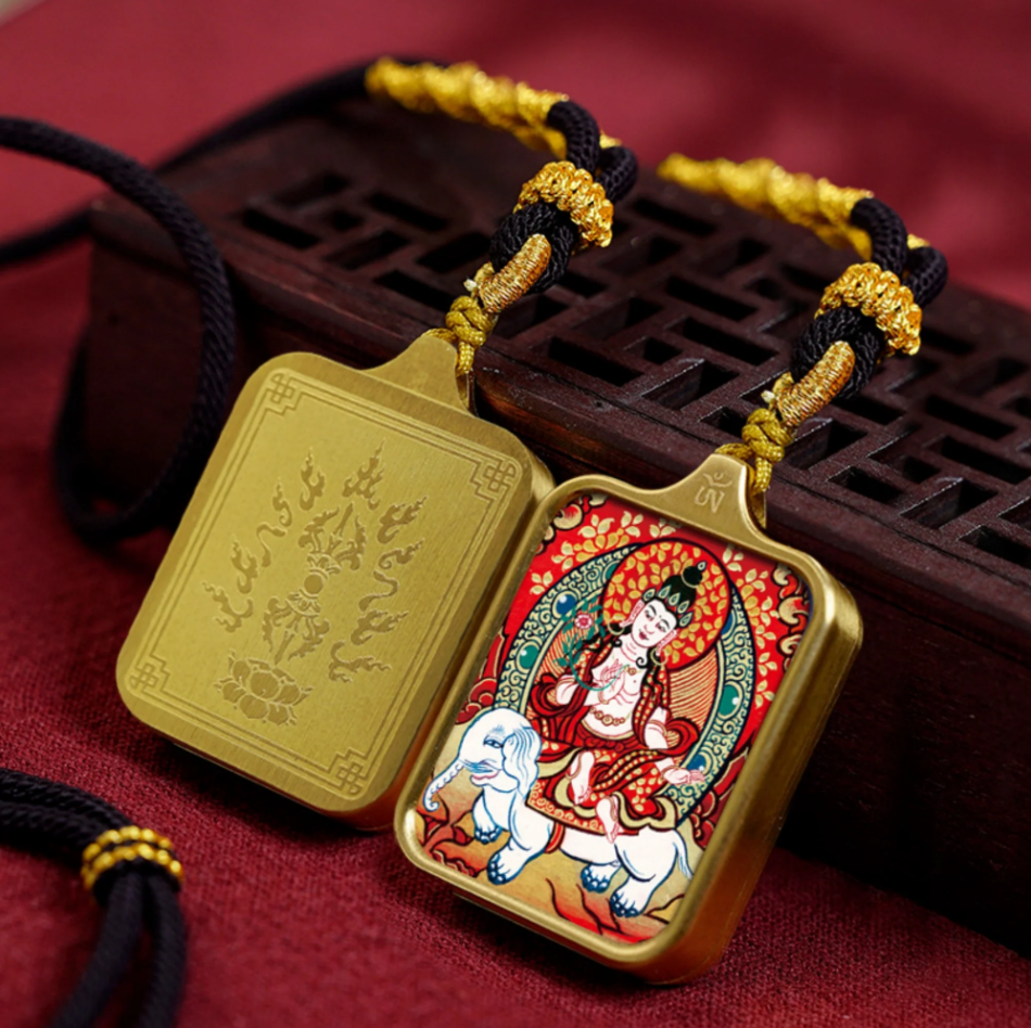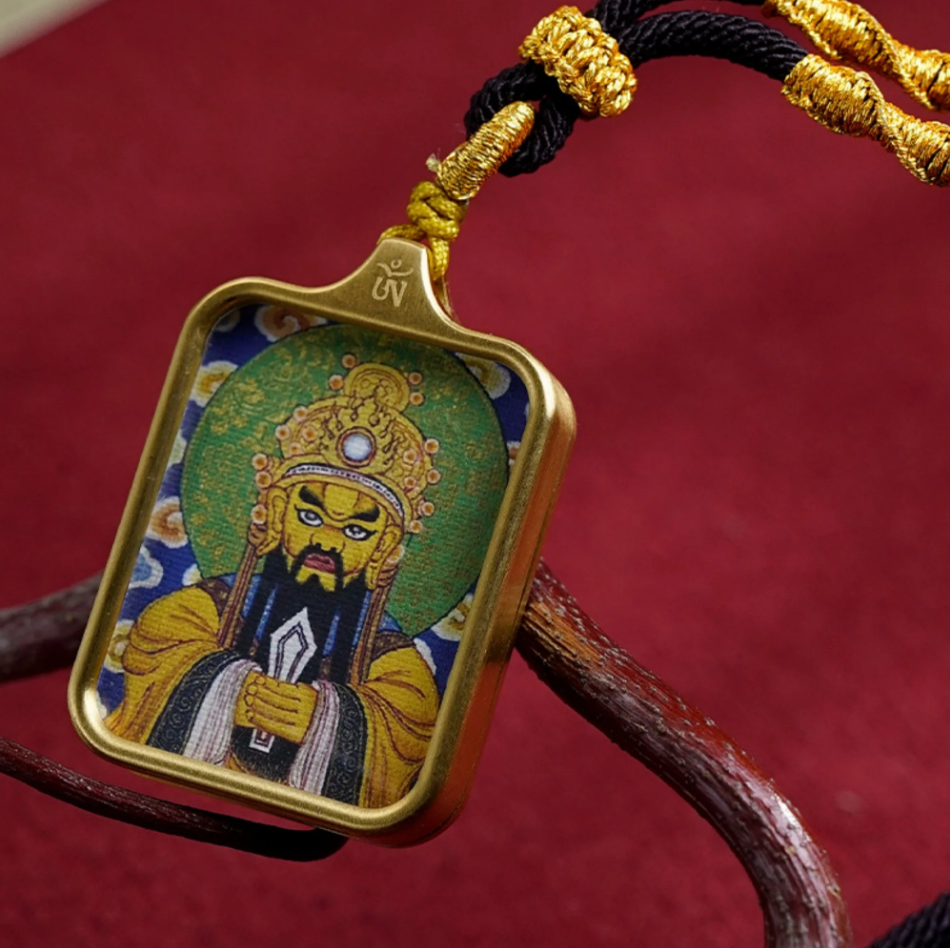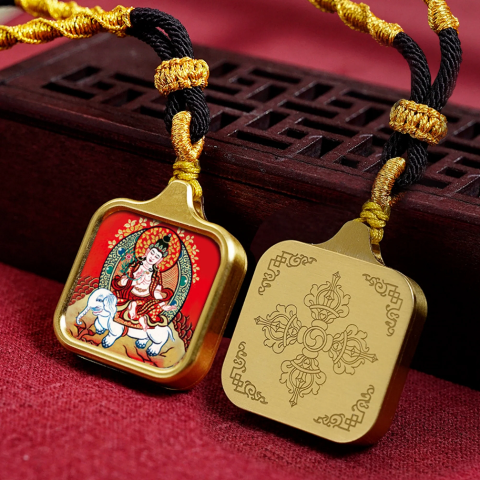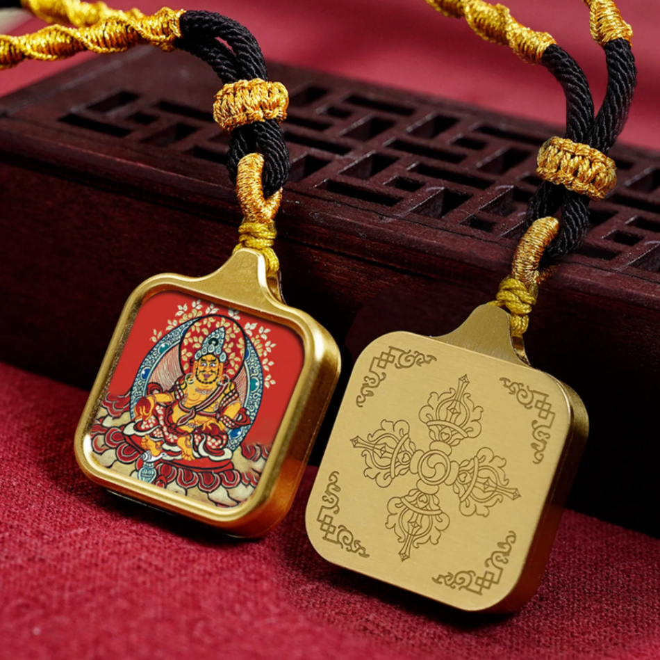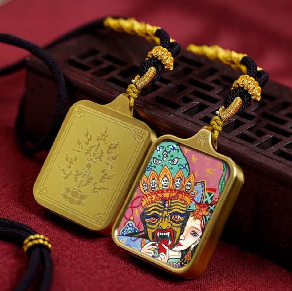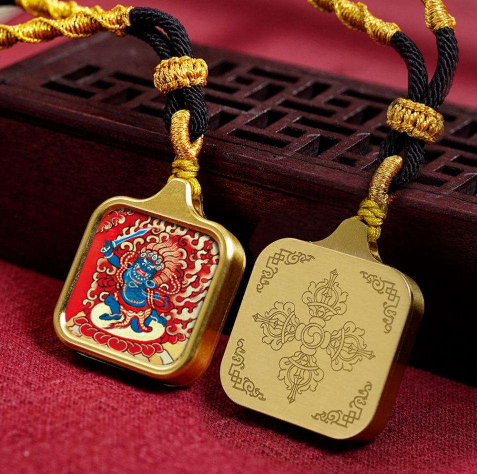 Hand-Painted Thangka: Each pendant is adorned with meticulously hand-painted Thangka, a traditional Tibetan Buddhist art form depicting sacred deities and symbols. These intricate designs showcase vibrant colors that represent the divine.