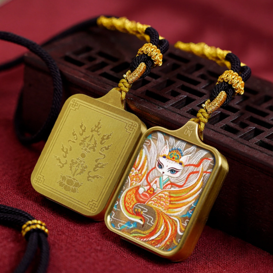 Symbolic Significance: Wearing a Ga Wu box has been a centuries-old practice in Tibetan Buddhism, symbolizing protection, spiritual connection, and blessing. The pendant features sacred symbols and deities, each with unique meanings.