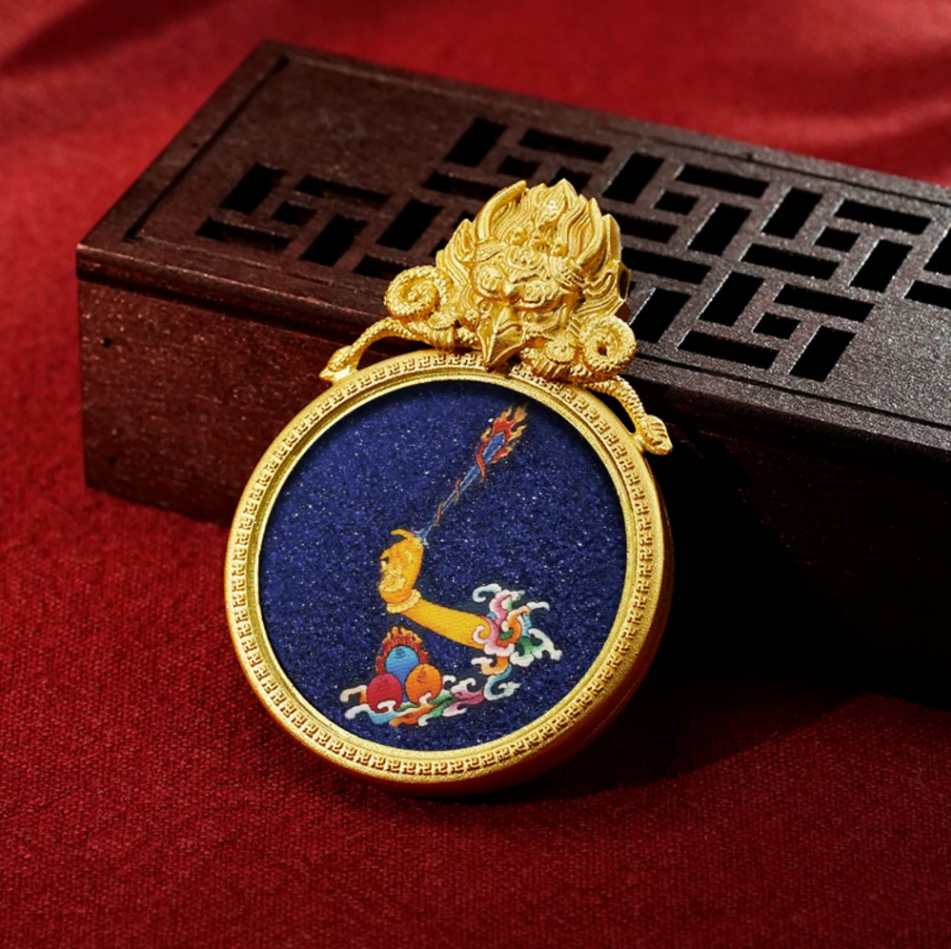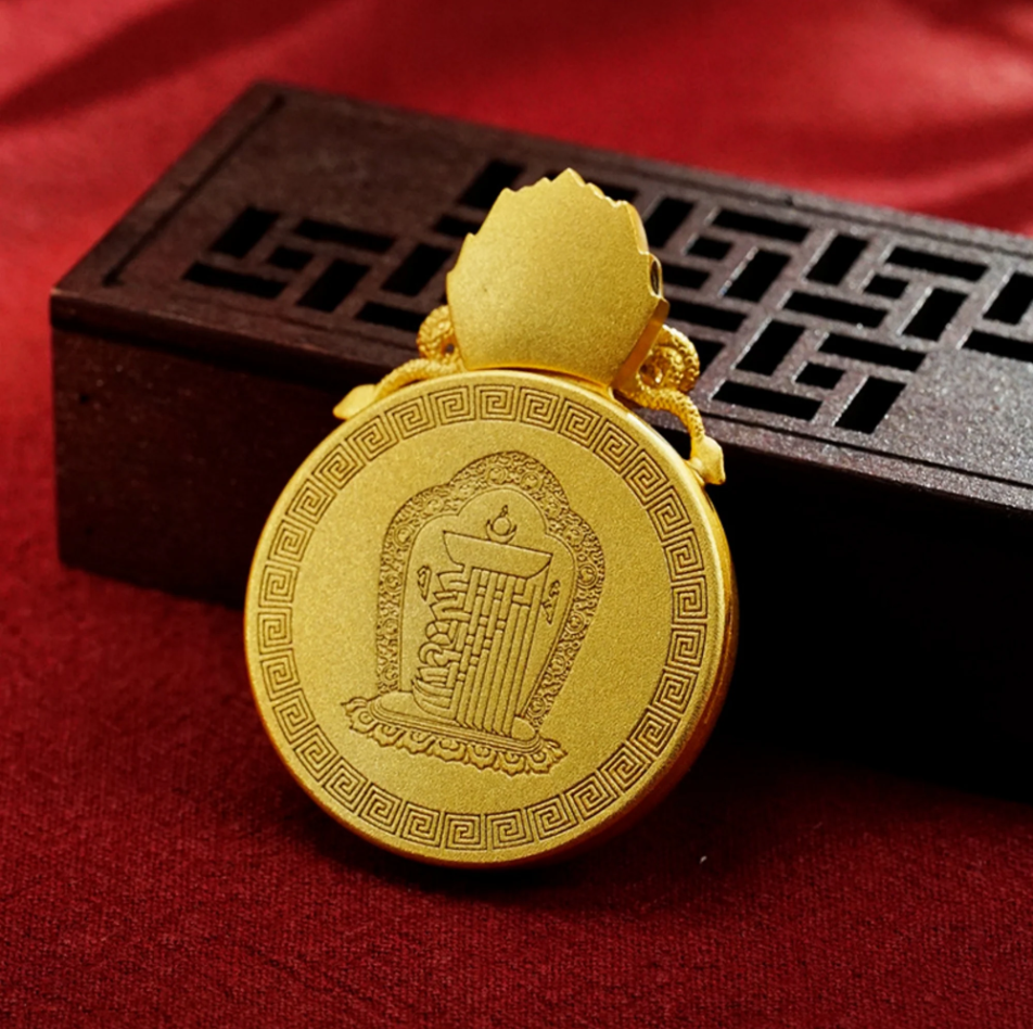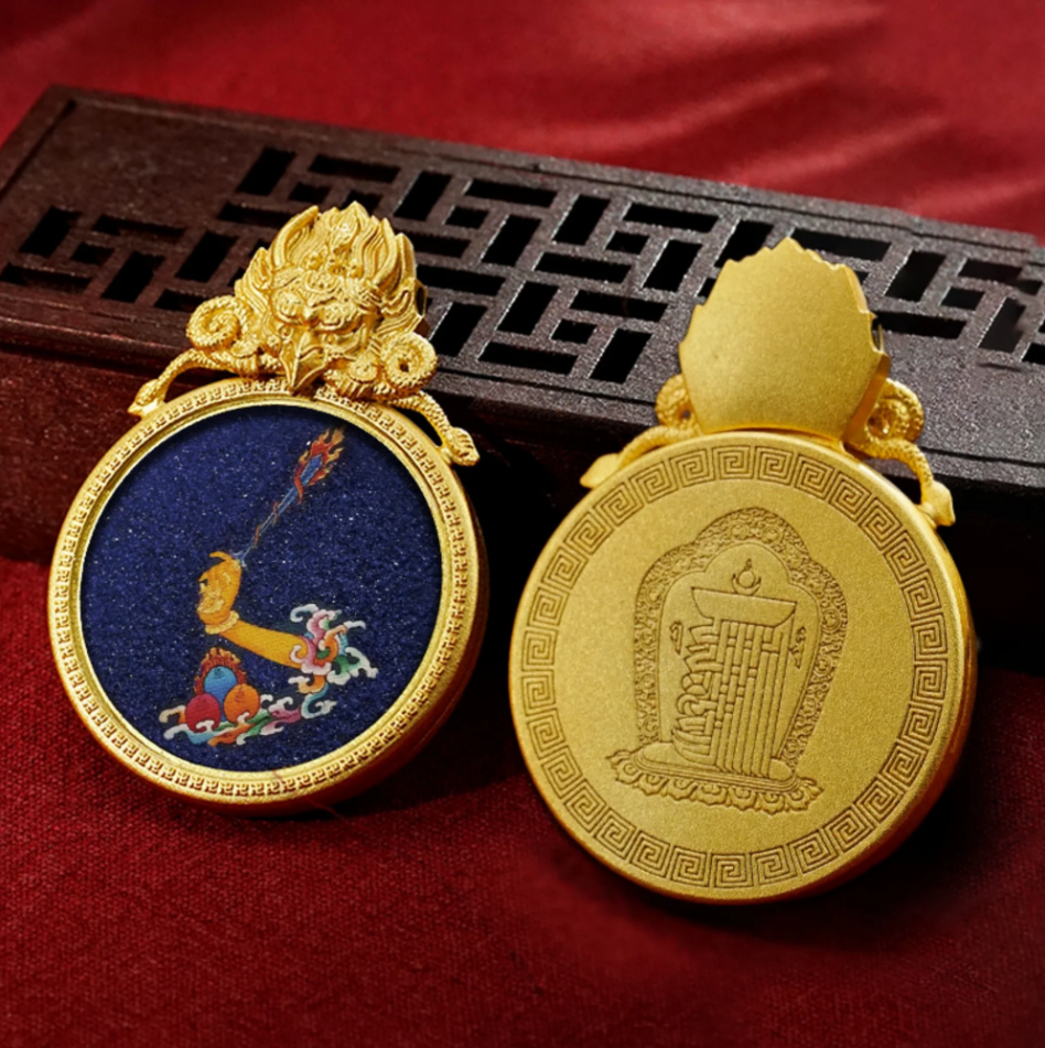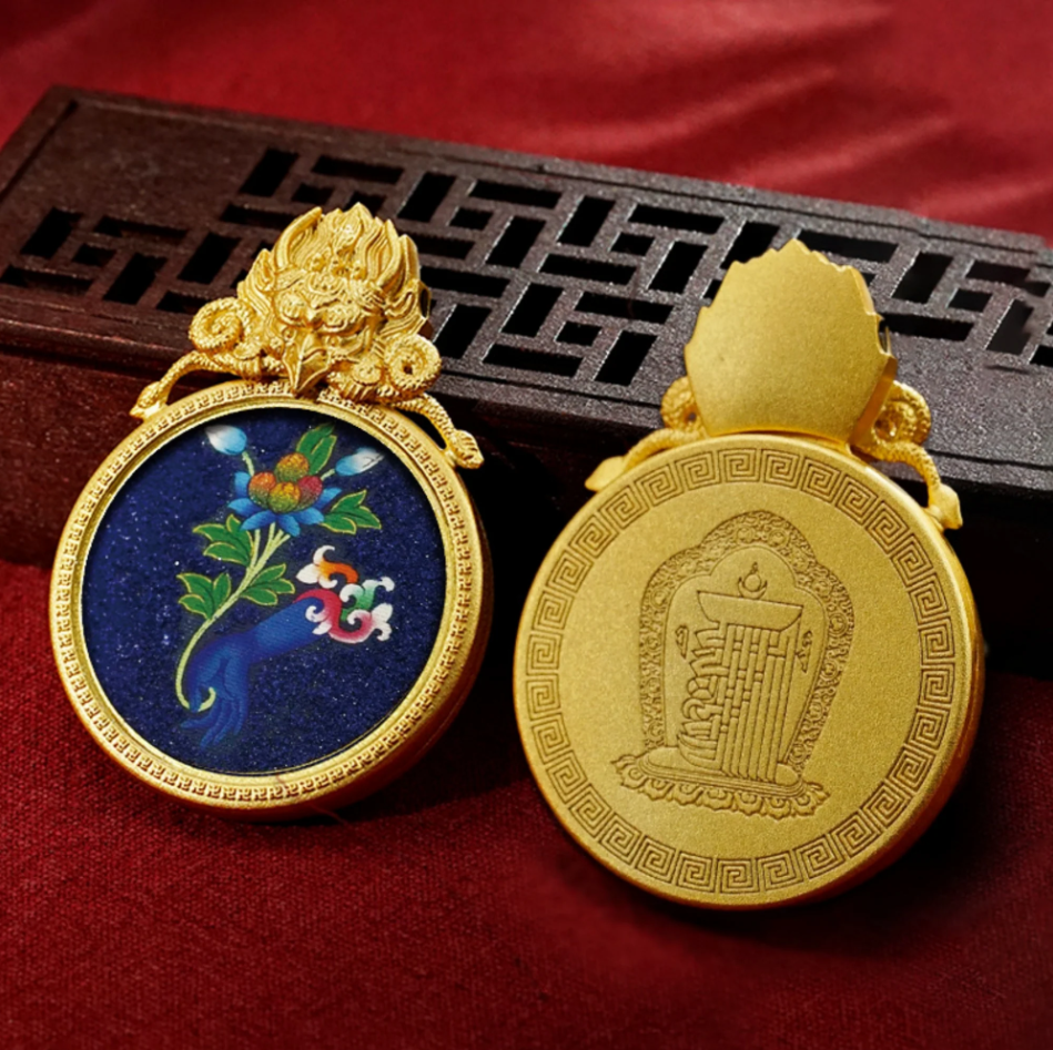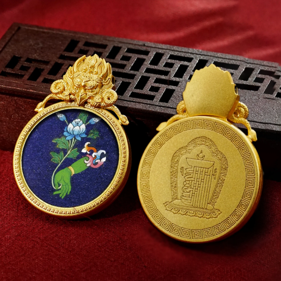 This pendant is inspired by the sacred hand gestures (mudras) of various Tibetan deities, each symbolizing different blessings and powers. The Ghau box is a traditional Tibetan amulet that serves as a protective charm, and this one is adorned with intricate representations of divine hands: