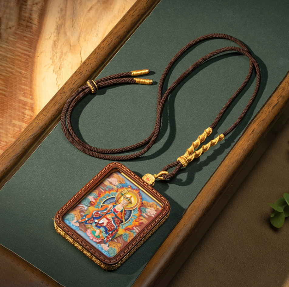 Fanchen·Tibetan Hand-painted 3D Thangka Buddha Pendant Necklace