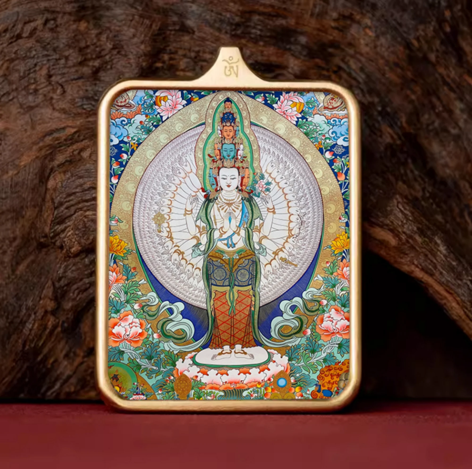 Crafted by the skilled hands of Tibetan artisans, the Tibetan Hand-Painted Thangka Pendant Necklace is a treasure of cultural heritage. Weighing approximately 40g and made from a durable copper alloy, this pendant is designed to maintain its shape and color over time. With a history spanning over 1300 years, Thangka art has traditionally been hung indoors. To allow devotees to carry the divine blessings with them at all times, the Thangka was adapted into a wearable form using a Ga Wu Box, a mobile shrine that protects the sacred image and allows for personal adornment without direct contact with the skin.