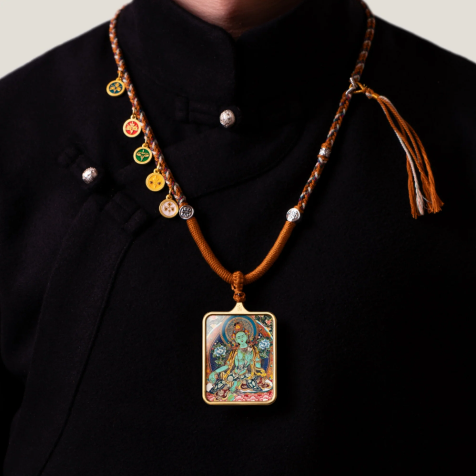 Carrying a Thangka with you is like carrying a blessing. This Tibetan Hand-Painted Thangka Pendant Necklace is not just a piece of jewelry; it is a portable sanctuary that embodies the spiritual essence of Tibet, offering protection and divine favor to its wearer.