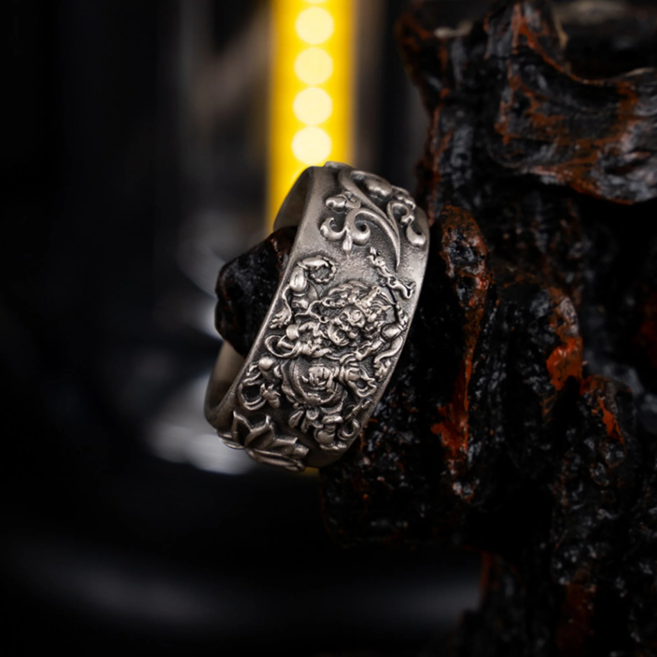 This Mahakala Sterling Silver Tibetan Buddhist Ring is a treasured piece of jewelry that combines the elegance of silver with the spiritual depth of Tibetan Buddhism.