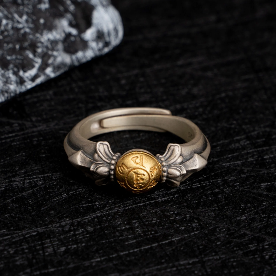Crafted by Tibetan artisans, the Manjusri Bodhisattva Sterling Silver Tibetan Buddhist Ring is an exquisite piece of jewelry that symbolizes wisdom and enlightenment. This ring is designed with an adjustable opening, allowing you to easily adjust the size to fit your finger perfectly. Made from S925 sterling silver, it is a testament to the purity and quality of the material used.