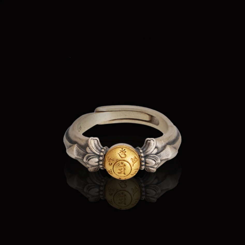 - Manjushri Bodhisattva Engraving: The ring features an engraving of Manjushri Bodhisattva's heart mantra and the sword of wisdom. Manjushri, one of the four great Bodhisattvas in Tibetan Buddhism, is symbolized by the sword of wisdom, representing the fierce power of wisdom. The ring is engraved with Manjushri's heart mantra and the sword of wisdom, embodying the essence of wisdom and academic success.
